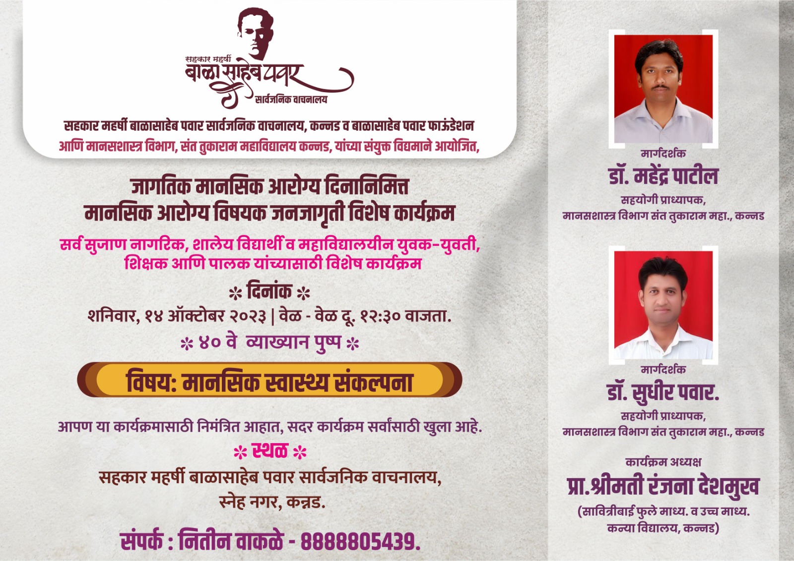 | 24 | Celebration of World Mental He | 2023-10-10 | Curricular | Department of Psychology | 61 | 30 | 31 |